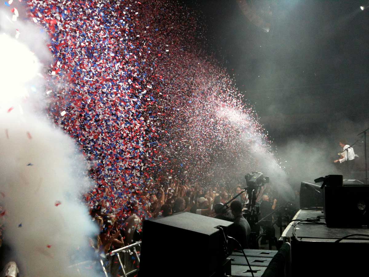 From single-shot confetti cannons with a minimum 5m range, right up to air-pressured stadium cannon shots reaching 25m. We even have handheld confetti guns to give you an interactive way of launching confetti and streamers. For continuous confetti launching effects, we have CO2 confetti blasters, perfect for big gigs and festivals. launching up to 25kg of confetti a minute. For something a bit more subtle we can provide confetti swirl fans to quietly drop confetti from a truss, perfect for the stage, theatre, TV, and film work.